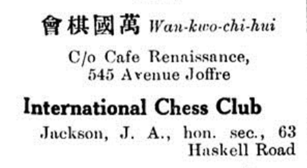 1929年初行名录记载的文艺复兴位于霞飞路545号,同一地址还有万国棋会(International Chess Club,是上海的国际象棋俱乐部,清末光绪年间已创立),直到1931年初都是如此。之后万国棋会搬到圣母院路(今瑞金一路),文艺复兴也不再出现。看起来应该有了变动,但实际情形更加复杂。