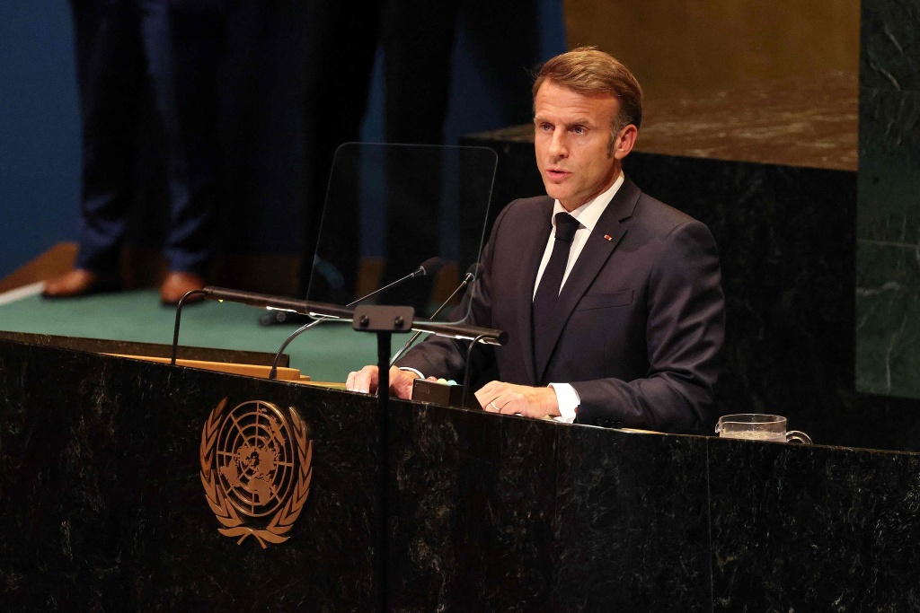 当地时间2025年9月22日,美国纽约,法国总统马克龙在联合国大会会场宣布,法国已正式承认巴勒斯坦国。视觉中国 图