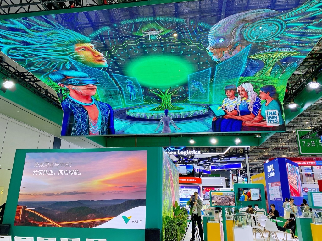 在该展台,参观者还有机会通过VR设备“探访”淡水河谷亚马孙生物公园,身临其境地体验亚马孙地区的生物多样性,与卡拉加斯花、红绿金刚鹦鹉、绒毛猴、美洲豹等生活在亚马孙地区的动植物“接触”。淡水河谷相关人士说,“我们希望借助本届进博会,带动参观者一同关注森林保护,同时展示巴西帕拉州新生代艺术家的蓬勃创造力,为即将于巴西帕拉州举行的第30届联合国气候大会和即将到来的‘中巴文化年’预热。”