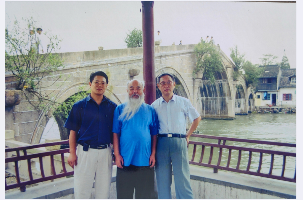 1999年初夏,柯文辉公(中)吴颐人老师(右一)罗敬频于千年古镇朱家角的合影