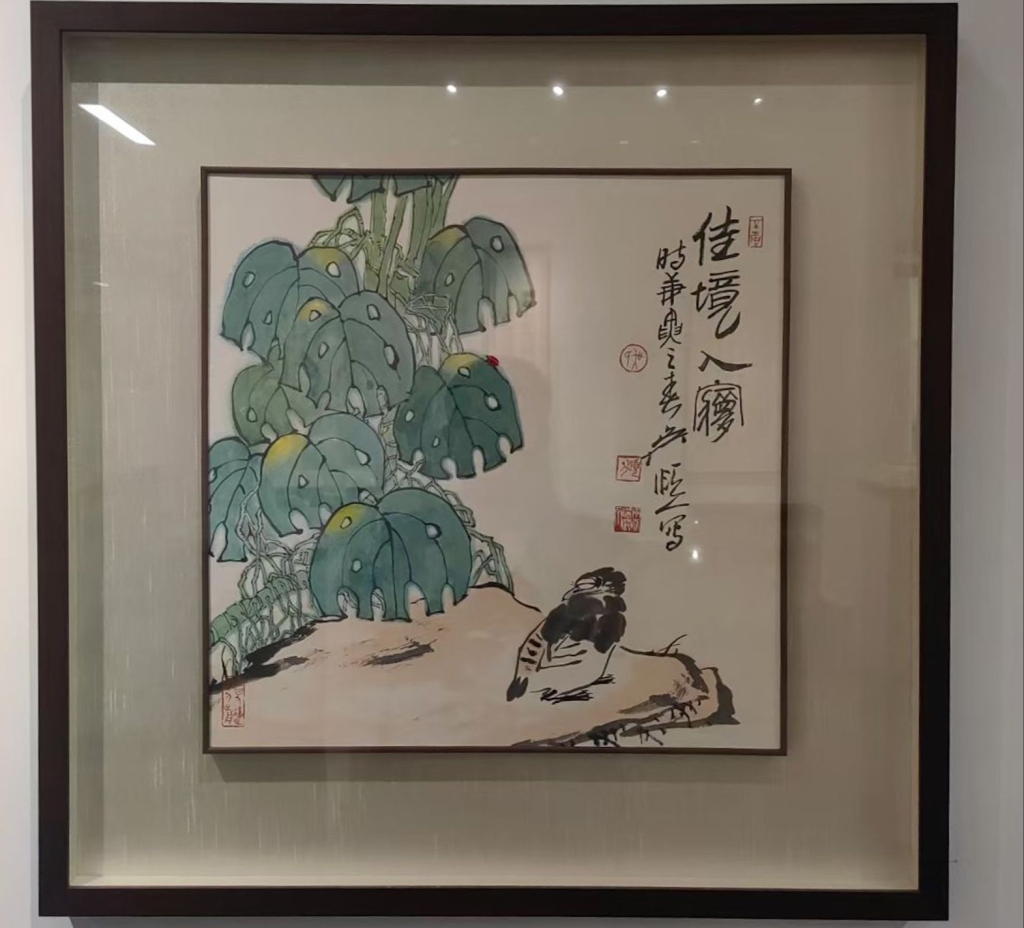吴颐人老师五十岁后开始作画,承袭吴昌硕、齐白石、李苦禅一路的大写意传统,题材多取诗意小景与花鸟虫鱼等生活日常。他以汉简笔法入画,辅以深厚的篆刻功力,画面充满浓郁的金石气息。在紫砂创作中,他亲自书画并运刀镌刻,以刀代笔,飞沙走石,使陶器上的笔意与刻工浑然一体,立意、造型与刀法高度统一,展现出高雅淳厚的艺术品格。