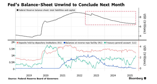 当地时间周三晚才结束的政府停摆,通过延迟本可提振流动性的联邦支出,进一步加剧了这一局面。与此同时,美联储正在进行的资产负债表缩减(即量化紧缩,QT)也起到了推波助澜的作用。