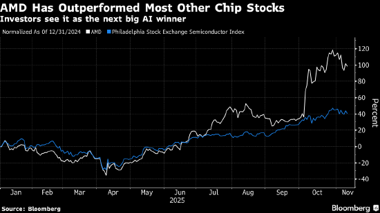 AMD向投资者更新其长期展望,正值外界越来越担心用于人工智能工作的新型计算机系统的巨额投入难以维持当前的高位。受益于与OpenAI和甲骨文等公司签署的协议,这家芯片制造商的股价今年已大约上涨了一倍。这些交易验证了AMD产品的质量,也表明其技术有能力从投入到新数据中心的数以百亿计美元中分得一杯羹。