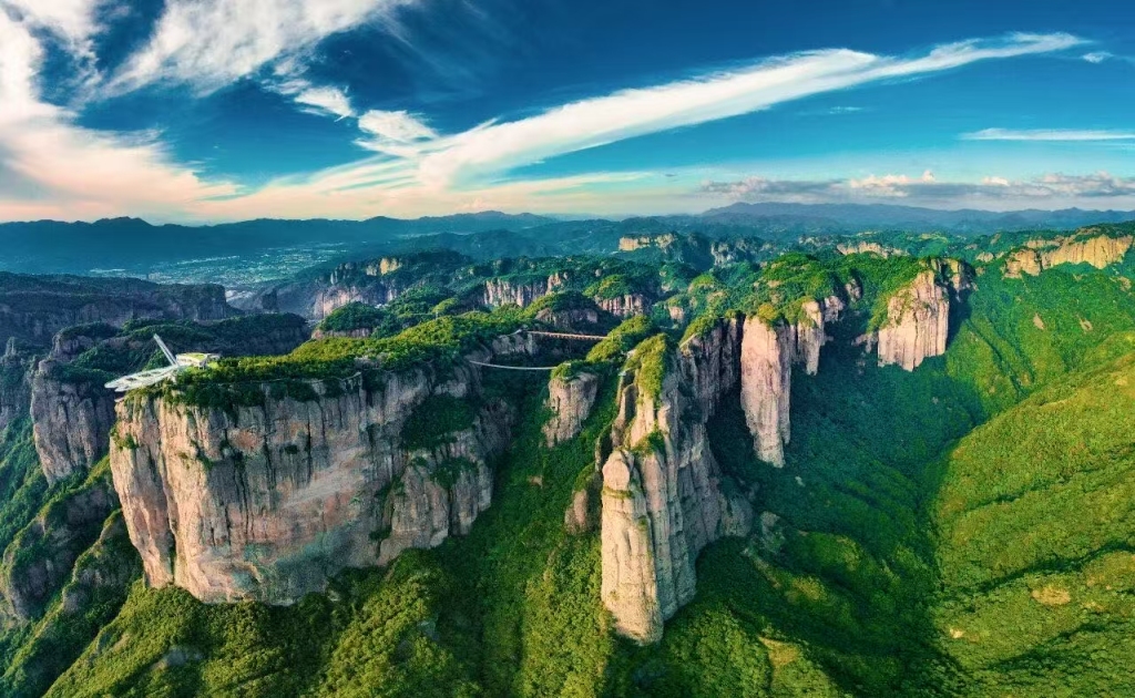 神仙居景区为火山流纹岩地貌,有奇峰险崖、绝壁天坑。