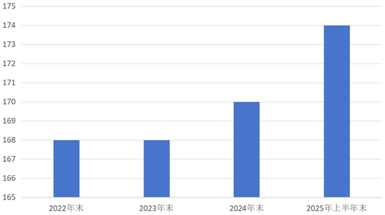 2022年末—2024年末及今年上半年末,兴福村镇银行控股的村镇银行分别为31家、31家、34家、30家,同期常熟银行机构数量分别为168家、168家、170家、174家。