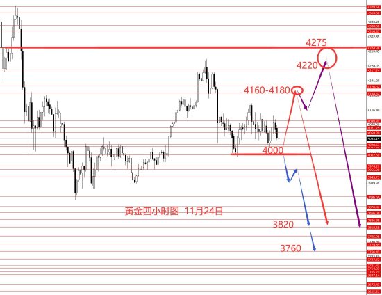 黄金上周4000附近得以支撑,在上方震荡整理,上周框架没问题,只是多空分界线应该是4000,而并非4030,所以上周的框架思路仍可延用:4000以上还是偏向于反弹概率大些,成功跌破后,才是直跌概率加大。本周在4000以上,留意向上信号出现,出现后,可先抓4000-4160/4180区域反弹行情,再看情况选择高空黄金,整体按4270以下震荡下行格局操作,反弹后高空,至于反弹高点,关注4160/4180区域和4220/4270区域;直接跌破4000继续下行做为备选方案。今日一样没有具体操作策略,框架和上周一模一样,唯一是多空分界线从4030变成了4000.框架思路仅供参考,风险自负。