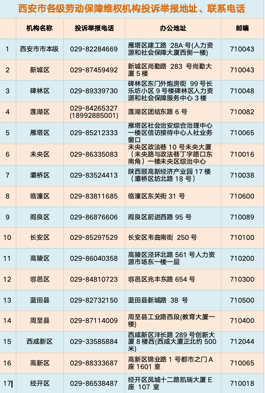 就近前往全市各级劳动权益保障机构接待大厅反映诉求,也可拨打西安市各级劳动保障维权机构投诉电话。