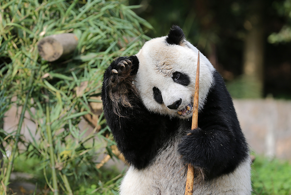 2018年12月3日,成都,“高高”正在吃竹笋。视觉中国 资料图