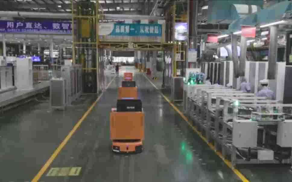 为车载冰箱物流配送打造的智能解决方案,,,包含产中物流通过潜伏举升AMR搬运至线边,,,产后成品物流智能仓储,,,流程包含产中物流智能齐套入库,,,线边安灯叫料AMR智能配送至线边,,,,成品入库、、、出库,,,,通过无人堆高车机器人,,,智能仓储管理替代人工作业管理,,实现更高存储、、更高效率、、、更具柔性化的解决方案。。